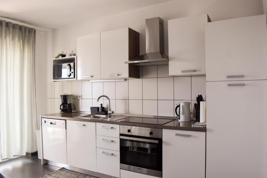 The apartment has a fully equipped kitchen with an oven, hob, hood, kettle, coffee machine, dishwasher, refrigerator and microwave oven.