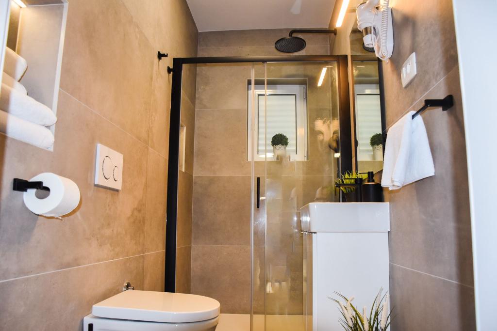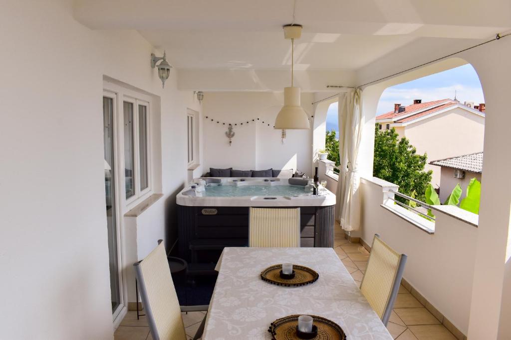 Apartment A4 covers an area of 80m2 and has a 30m2 terrace with a view of the sea and the islands. There is a large hydromassage tub on the terrace.
