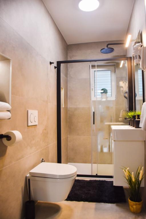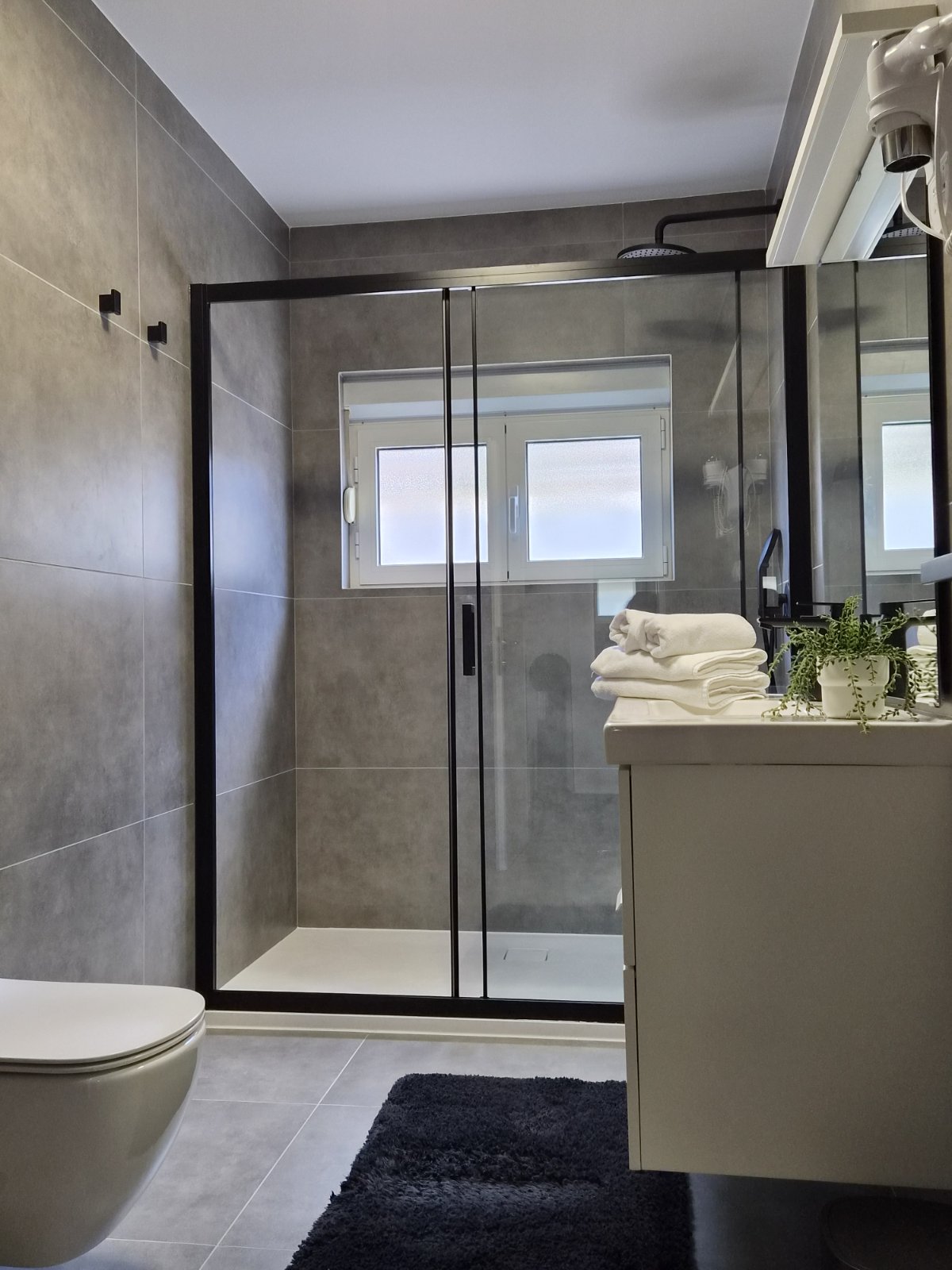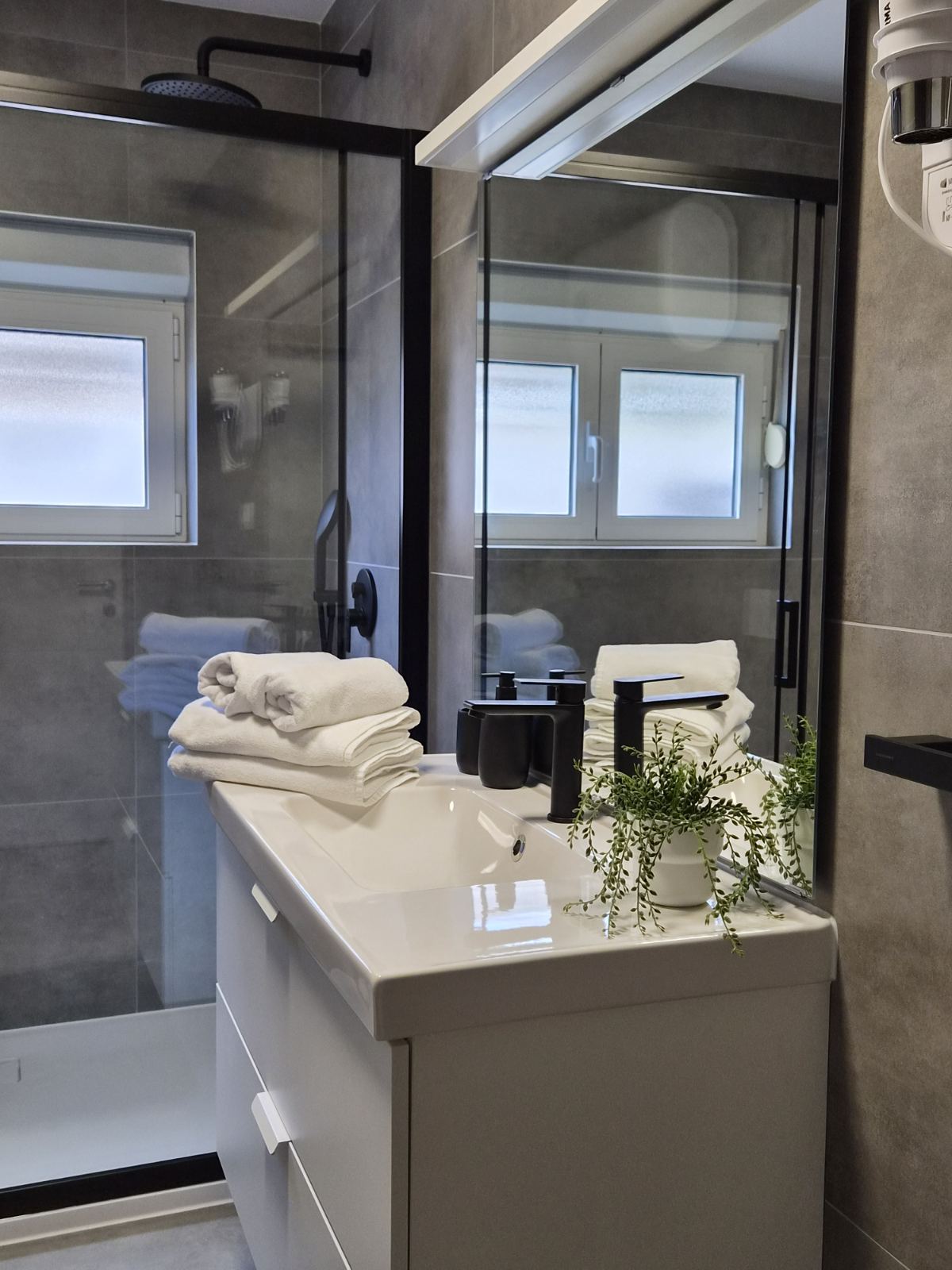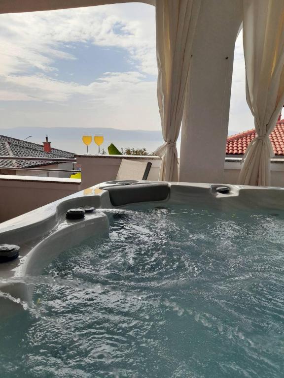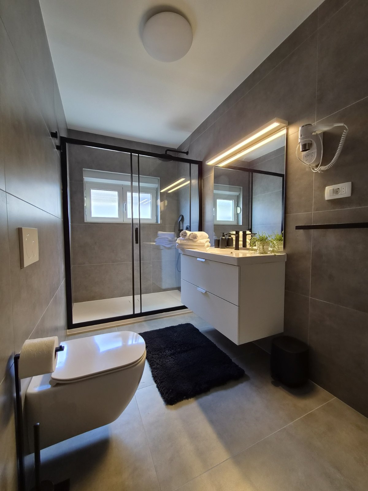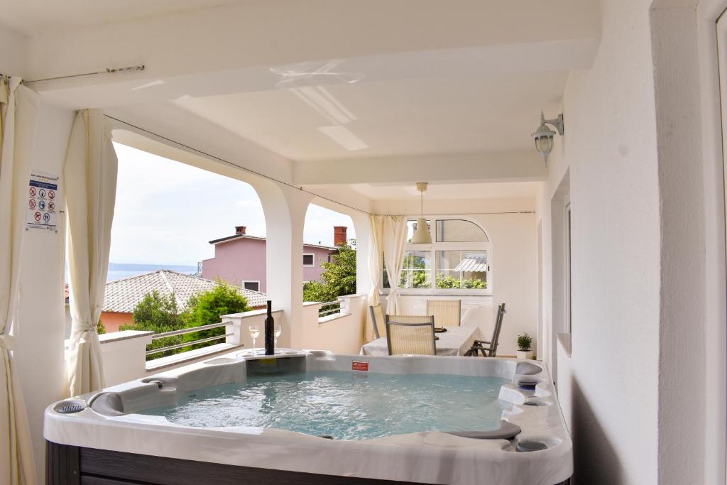 Apartment A4 covers an area of 80m2 and has a 30m2 terrace with a view of the sea and the islands. There is a large hydromassage tub on the terrace.